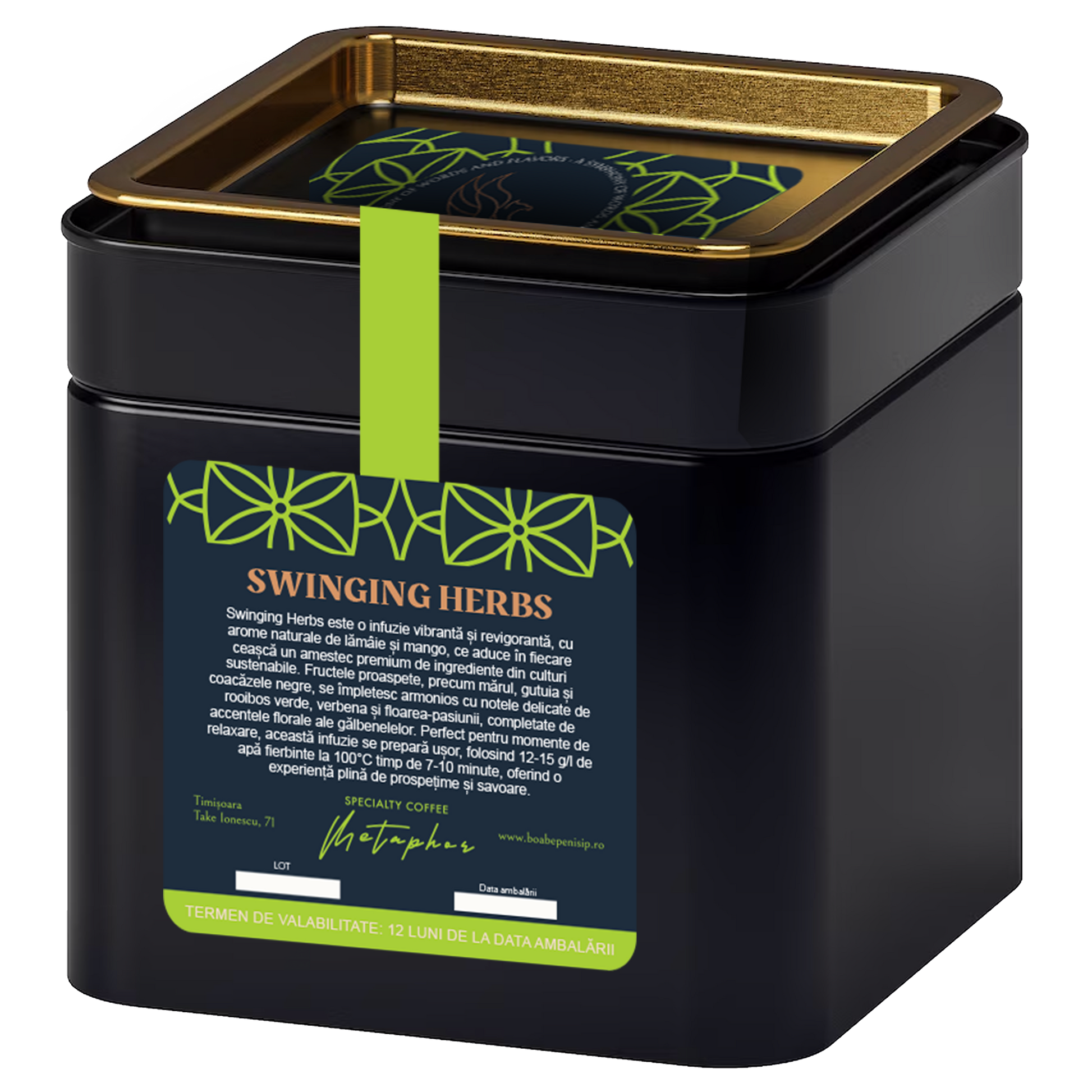 Perfect pentru dimineți liniștite sau seri relaxante, Swinging Herbs este alegerea ideală pentru o infuzie naturală, sănătoasă și delicioasă.